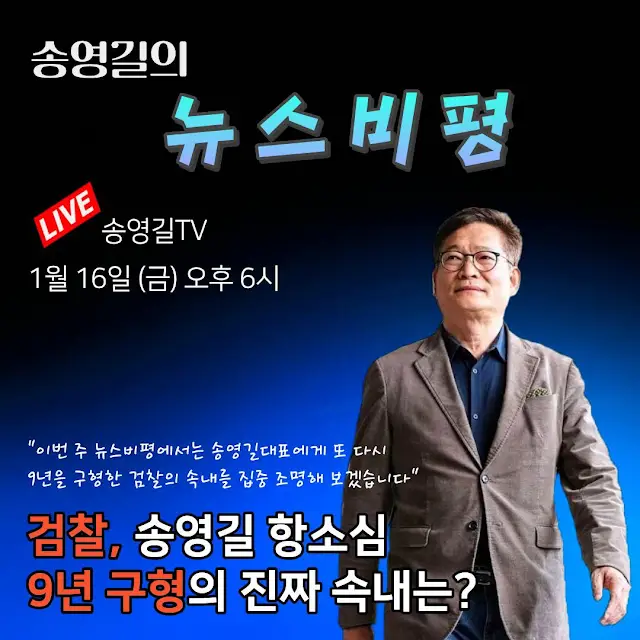 1월 16일 (금) 오후6시 송영길의 뉴스비평 송영길tv Live 등록일2026. 01. 15