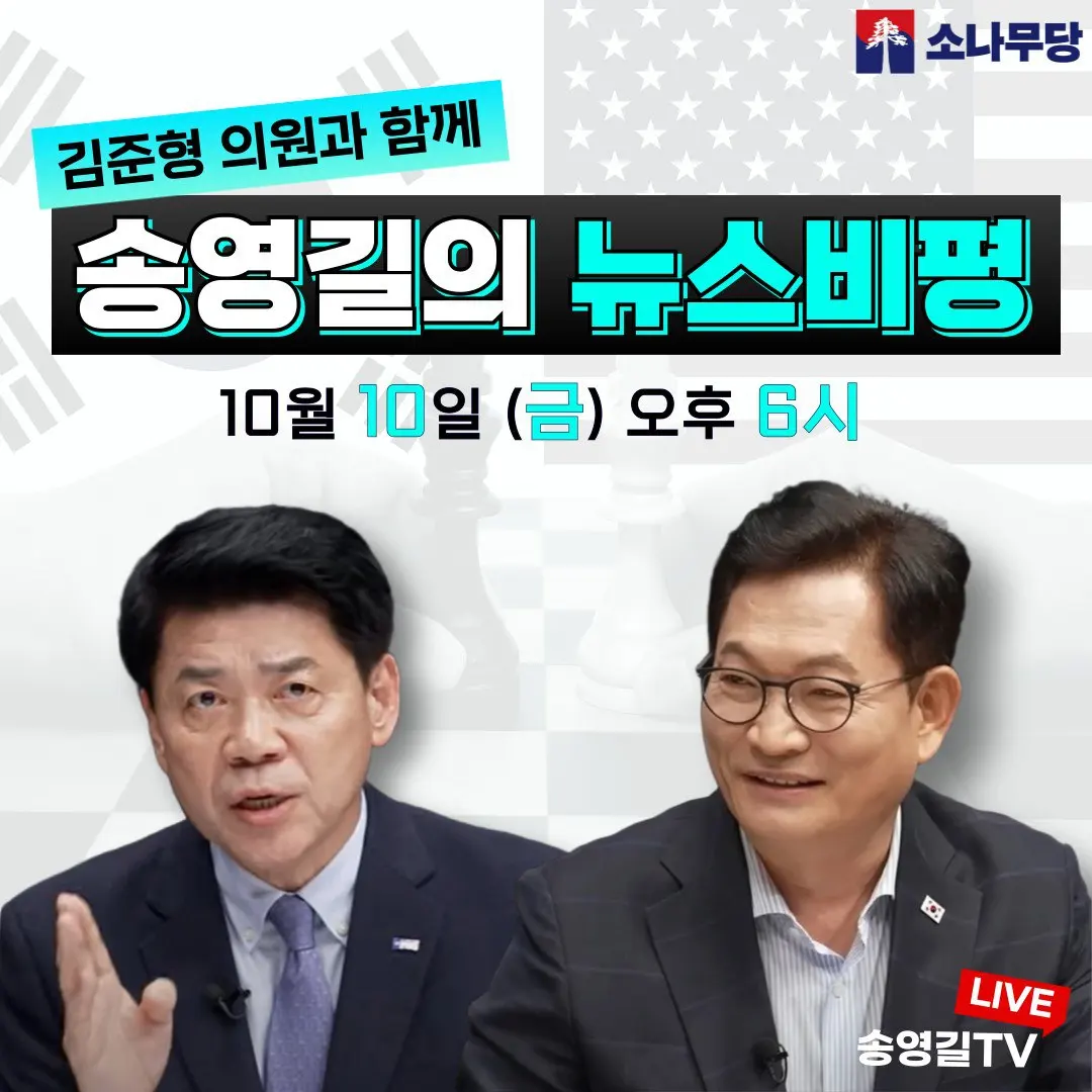10월 10일 (금) 오후6시 <송영길의 뉴스비평> 조국혁신당 김준형 의원과 함께 등록일2025. 10. 10