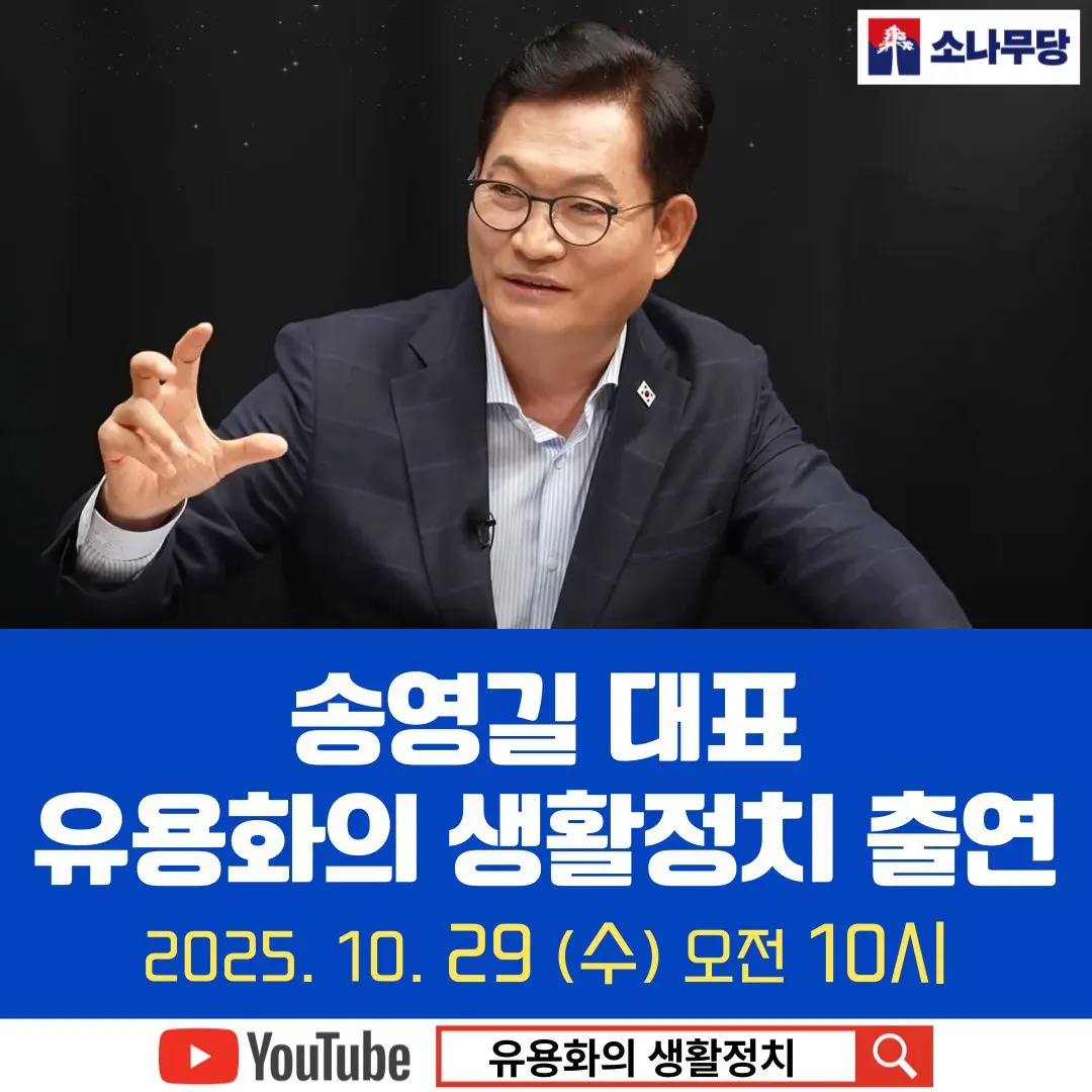 10월 29일 (수) 오전 10시《유용화의 생활정치》Live 송영길대표 방송출연 등록일2025. 10. 29